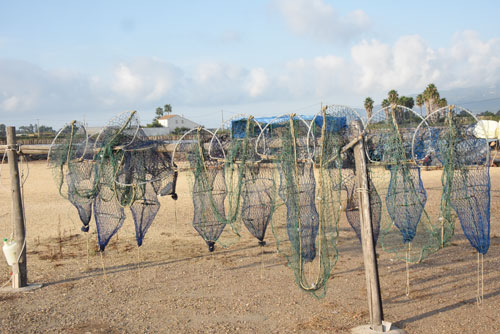Gears used to trap blue crabs dry in the sun before being placed in the lagoon again.