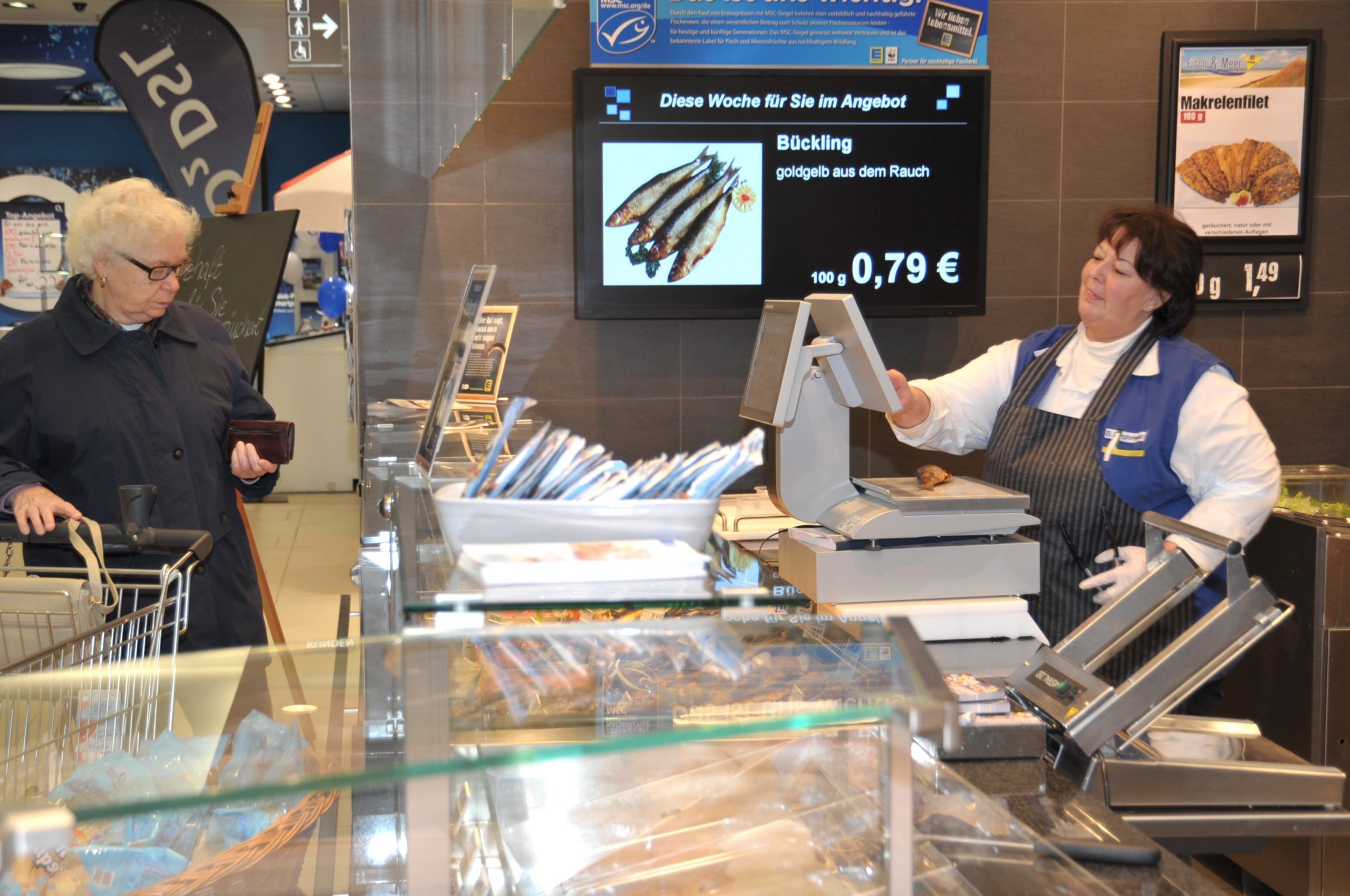 Although more and more products arrive at the retailer’s ready weighed, ready packed and marked with price according to their weight, supermarkets and other retailers continue to be one of the most important user groups for scales. They are not only found at service counters but also as self-service and control scales for the customers or – hardly recognizable as scales – as integrated weighing modules at the checkout. All of these scales have special abilities that make them suited to their respective application field. Scales at service counters, for example, have to be easy and quick to clean in between times – hygiene and efficiency are key here. A lot of scales are fitted with a receipt or label printer and a computer unit that calculates the price and generates the product-specific barcode which can then be scanned for payment at the checkout. If however the product is to be paid for directly at the counter as is often the case on markets and at the fishmonger’s the scales can also be fitted with a cash drawer or function. The options for service counter cash desks are huge and they are available both in normal standing and in space-saving suspended versions that are often preferred particularly at fish retail counters. Manufacturers pay attention that their scales will not prevent eye contact between the sales assistant and the customer, for example.