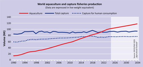 While landings from capture fisheries are expected to remain at roughly the same level by 2034,