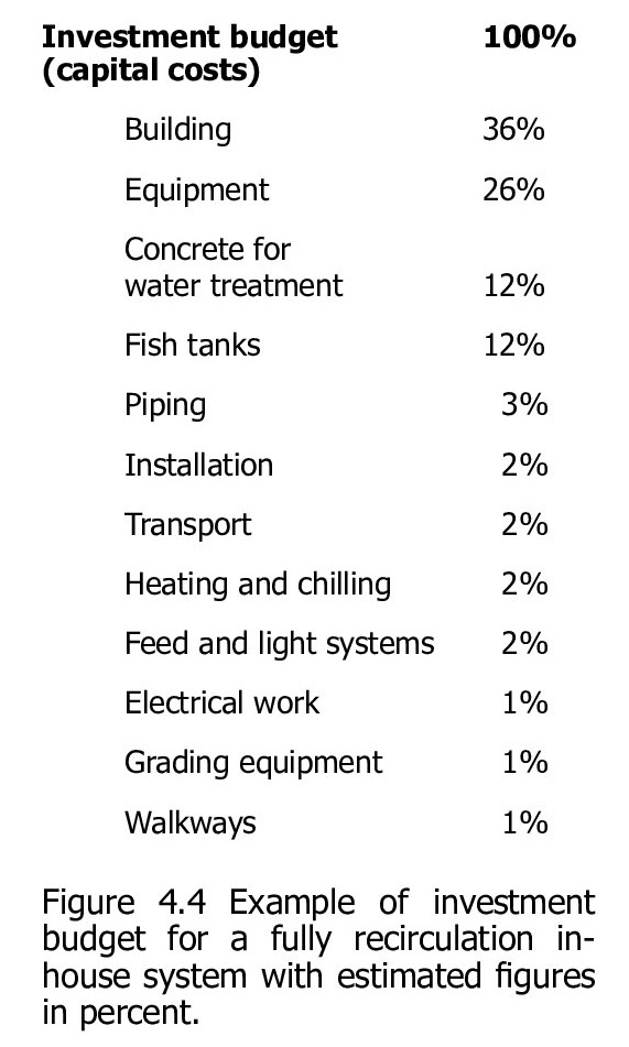 The requirement for financing is far too often underestimated. The capital costs are very high when starting up a new plant from scratch, and investors seem to forget that producing fish is a long-term affair. The time from starting the construction and getting the first pay-back from fish sold takes typically from one to two years. Careful preparation of budgets is therefore of vital importance.