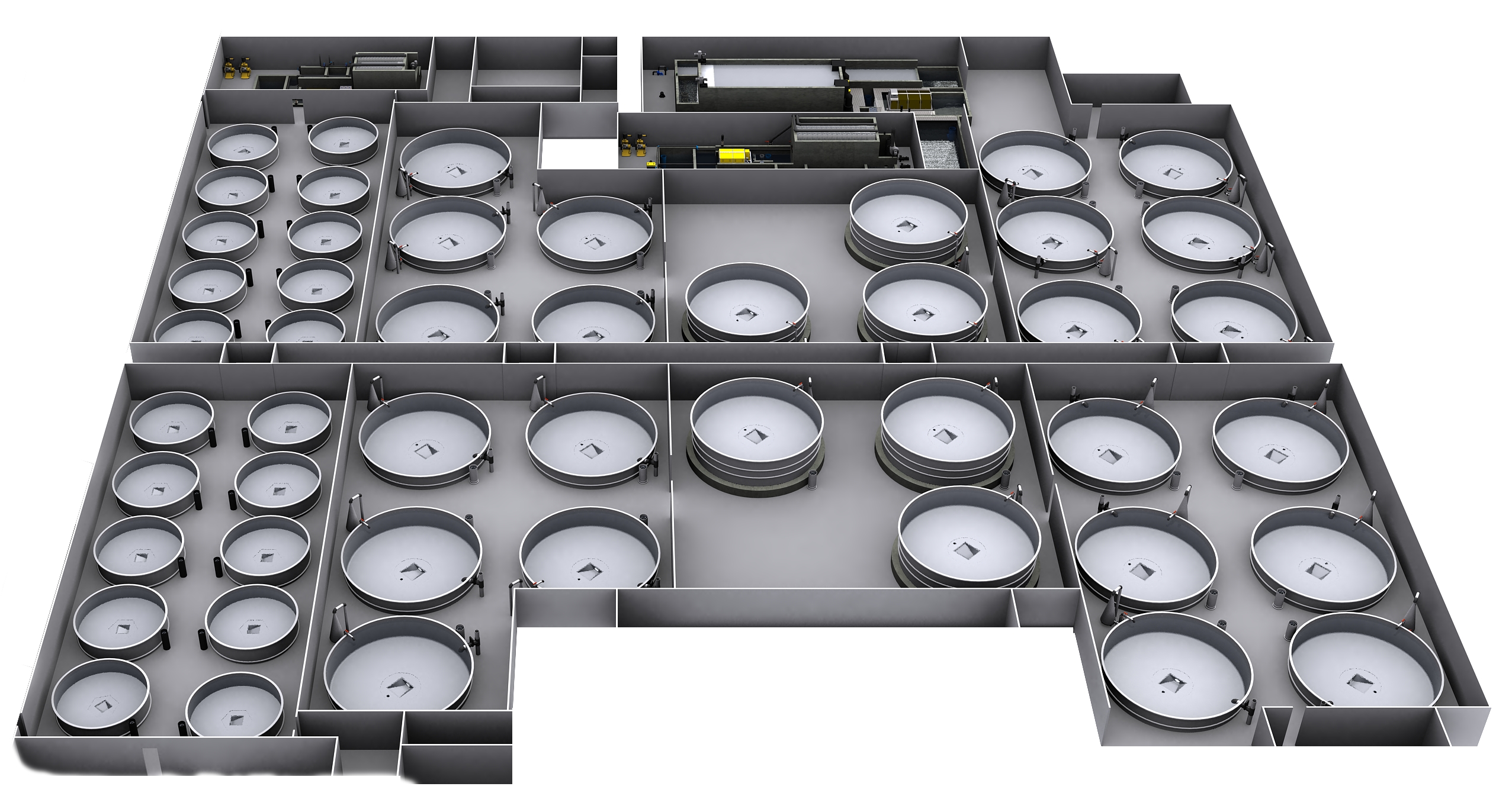 Figure 8.5 A 3D drawing of mega farm with 15 meter diameter tanks reaching tank volumes of more than 500 m3 eac