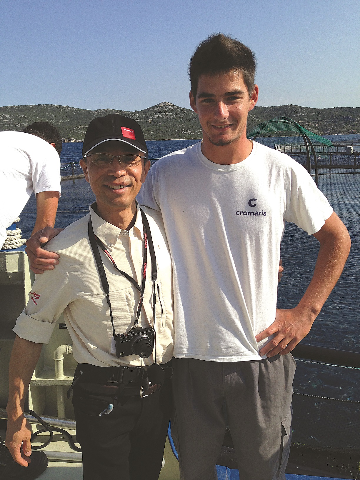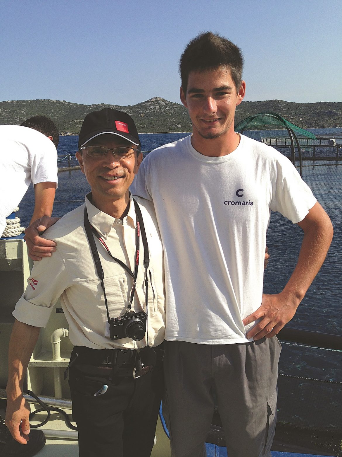 For two days at the beginning of October, there was plenty of activity at the Cromaris plants and fish farms, where seabass, dentex, meagre and gilthead seabream are bred in Gaženica, and off Zadar. Apart from the catamarans and fishing boats used to feed, monitor, maintain and catch the caged fish, a luxury motor vessel, the Nada, moored alongside with forty guests on board from all shores of the Mediterranean. They were managers and others responsible for technology at the largest Croatian fish farms, and their colleagues from Italy, Greece, Portugal, France and Tunisia. They were invited to a presentation of Yanmar’s new NCL-LX robot cage cleaner, organised by Navela, distributors for Yanmar, and Cromaris, the hosts. The robot is a powerful, high efficiency machine intended for use in large cages used to breed tuna or salmon, and also smaller fish such as sea bass. Takitarou Osaka, its creator, came in person to demonstrate how it worked.