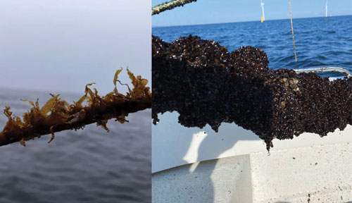 Aquaculture brings its own set of challenges. Storms, harvesting, or maintenance can cause mussel shells and dead individuals to fall to the bottom, potentially altering seabed composition. Mussels also produce bio-deposits that might reduce oxygen levels locally. However, in offshore areas like Krieger’s Flak, where the WIN@sea project is located, strong currents help disperse these, minimising the risk. Seaweed farms may release organic matter or attenuate light, yet with suitable management, these effects are limited. In Denmark, seaweed is not cultivated where natural seabed vegetation grows, and at the greater depths of offshore wind farms, light limitation is negligible, with little expected impact on the seabed. Another concern is the spread of invasive species. Structures like seaweed farms and wind turbines provide new surfaces for organisms to colonise, including non-native species that may compete with native species. These structures may act as “stepping stones,” enabling species to extend their range more easily than they would in a pristine seascape, thereby potentially outcompeting native marine life.