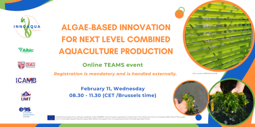 The European Aquaculture Society (EAS) announced an online teams event on combined plant and animal aquaculture production technologies, which will take place on 11 February, between 8:30 and 11:30 CET. The first of two events—the second focusing on algal extracts and their potential applications—will showcase examples of production systems at pilot or near full scale production from Europe and South East Asia, and will be followed up by a panel discussion and audience Q&A. A wide range of topics will be covered by the presented case studies, from seaweed cultivation and production in Thailand to a land-based IMTA approach in Portugal, providing a comprehensive overview of algae-based innovation in the aquaculture sector. With speakers presenting a similarly diverse picture, covering both European and South East Asian perspectives, the event presents the perfect opportunity to discuss concept approaches, pilot successes and upscaling issues from around the globe.
