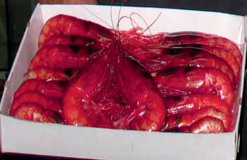 Gioacchino Bono at the Institute for Coastal Marine Environment on Sicily is looking at packaging technology that can be used on board demersal vessels catching high value products such as crustaceans. The aim is to give the fisher a better price for his catch and compensate for lower catch volumes. One of the ideas he is working with is the use of modifi ed atmosphere (MA) to package the product. Currently, a vessel catching shrimp in the eastern Mediterranean has been installed with a trial machine that can either use MA or skin packag
