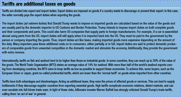 According to Seafood Source, higher import tariffs on goods from Canada, Mexico, and China would affect fish and seafood products worth over €5.3 billion. The additional costs for US seafood importers would amount to €1.12 billion. The US trade deficit, which Trump has frequently criticised, is particularly severe in the fish and seafood sector, as nearly 80% of the seafood consumed in the country is imported. That is why many of those affected within the US itself are hoping that cooler heads will prevail and action will be taken as soon as possible, because tariffs do more harm than good.